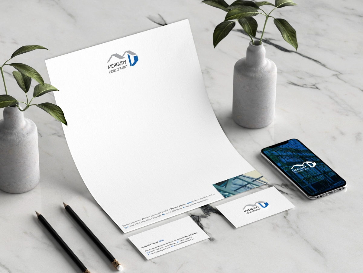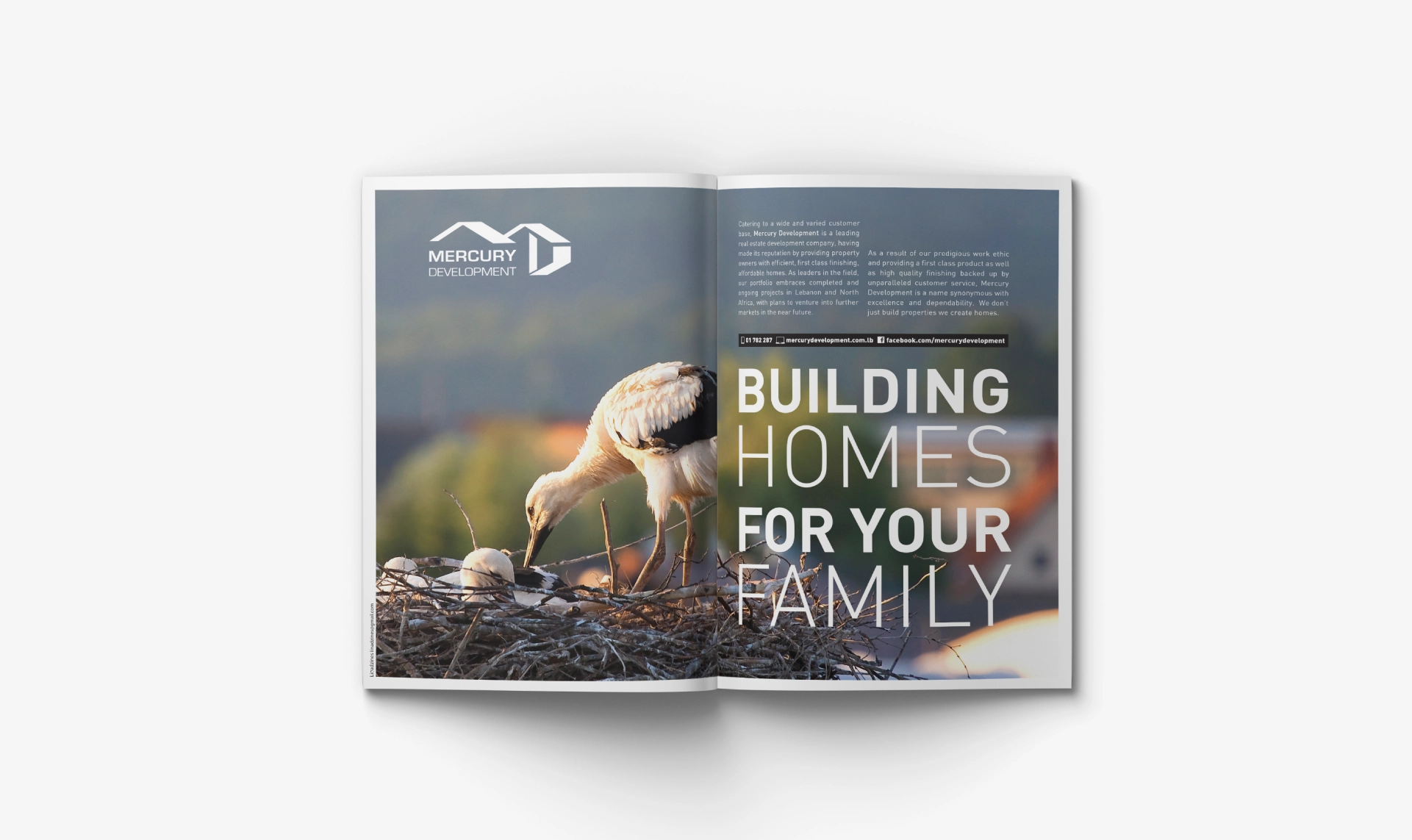 When you think construction, you think cold concrete. For Mercury Development, a construction and real estate company based in Lebanon, with offices in Africa and The Middle East, we wanted to achieve the opposite of that by putting home and family at the core of its identity. The logo uses the initials of the company and brings them together as the pillars of the homes Mercury is known for creating. From company profiles, letterheads, cards, brochures, and advertising, we’ve continued to build their branding and identity, as well as our relationship.