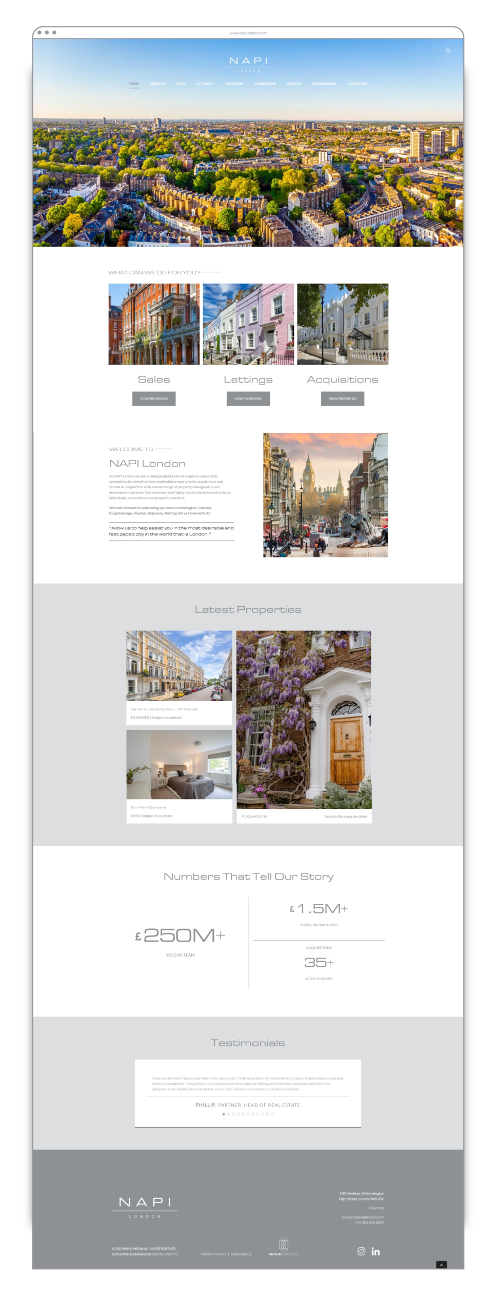 Real estate in central London is all about prestige and precision. For Napi London, a team of expert property consultants, we set out to craft a digital presence that reflects their sophistication, expertise, and reliability. We fully designed and developed their website, ensuring it aligned seamlessly with their brand identity. By following their colour guidelines and refining every detail, we created a top-tier website that enhances their credibility, strengthens their online presence, and showcases their services effectively.